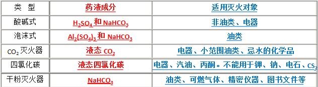 化学试剂的保存方法 一般规律:固体试剂通常放在广口瓶中,便于伸入药匙或镊子取出固体;液体试剂为便于倾倒,并防止挥发,通常要存放在细口瓶中。有些试剂由于具有特殊的性质,易与周围环境(包括容器)发生作用,需要特殊的贮存方法。可归纳如下: 1.需要密封保存的物质 (l)易挥发的物质需密封于试剂瓶中,并置于阴凉处。如浓硝酸、浓盐酸、氨水、卤素 水溶液、液溴等。尤其是液溴,要“水封”后密封保存。 (2)易风化的物质和易吸水的物质需密封贮存。如CaCl2,浓H2SO4、变色硅胶、CaO、Na2CO3·l0H2O、固体NaOH等。易水解的物质如氮化镁等,更需要严格密封。 (3)易吸收空气中的CO2的物质需密封保存,如NaOH溶液、Na2O2、石灰水、Ca(C1O)2(漂白粉)、水玻璃(Na2SiO3溶液)等。 (4)易被空气中O2氧化的物质需密封保存,如亚铁盐、亚硫酸盐等。 其中,白磷由于极易氧化引起自燃,故大量白磷严格密封,少量白磷可浸在冷水中保存,切割白磷也应在水面下进行(防止在空气中切割时,白磷与小刀摩擦引发燃烧)。而Na、K由于易跟水反应,不能保存在水中,而是保存在煤油中,金属锂则由于密度小于煤油,密封于石蜡中。 2.需要避光的物质 因光照或受热而变质的物质需用棕色瓶且密封保存,如HNO3、硝酸盐、H2O2、溴水、氯水等;AgCl、AgBr及某些有机物(如苯胺)等极易感光的物质要用黑纸(布)包裹后,置于暗室里保存。 3.易与普通玻璃仪器发生作用的物质 NaOH等碱性物质不能用玻璃塞(因生成Na2SiO3而粘结);强酸、氯水、溴水、KMnO4、有机溶剂等能腐蚀橡胶,故不能使用橡皮塞;氢氟酸(HF)不能用玻璃瓶盛放。 4.某些溶液在配制或保存时,为防止氧化、水解,需要加入相应的物质。 如: FeSO4溶液,需要加入铁钉(防氧化)和稀硫酸(防水解);SnCl2溶液需要加入锡粒(防氧化)和稀盐酸(防水解)。 5.有些溶液由于极易氧化,不适宜长期保存,需现用现制。如氢硫酸(H2S溶液)等。 值得注意的是,有些物质具有多重性质,需要从多个方面考虑其保存方法。如硝酸,既有挥发性(密封),又不稳定(见光易分解,置棕色瓶中),还有强氧化性(不能用橡胶塞)。 实验过程中的危险与防治 1.实验安全 ●防止火灾 化学药品中有很多是易燃物,在使用时若不注意可能酿成火灾。所以,对易燃物:① 必须妥善保管,放在专柜中,远离火源。易燃品、强氧化剂、钾、钠、钙等强还原剂要妥善保管;② 使用易挥发可燃物,如乙醇、乙醚、汽油等应防止蒸气逸散,添加易燃品一定要远离火源;③ 进行加热或燃烧实验时要严格操作规程和仪器选用,如蒸馏时要用冷凝器等;④ 易燃物质用后若有剩余,决不能随意丢弃,如残留的金属钠应用乙醇处理,白磷应放在冷水中浸泡等。 在使用酒精灯时,一定要注意:① 不能用燃着的酒精灯去点燃另一盏酒精灯;② 不能用嘴吹灭酒精灯;③ 不能向燃着的酒精灯中添加酒精;④ 灯壶内的酒精不能超过容积的2/3等。 ●灭火 如果不慎在实验室发生火灾,应立即采取以下措施:① 防止火势扩展:移走可燃物,切断电源,停止通风。② 扑灭火源:酒精等有机溶剂泼洒在桌面上着火燃烧,用湿布、石棉或沙子盖灭,火势大可以用灭火器扑灭。小范围的有机物、钾、钠、白磷等化学物质着火可用沙盖灭。③ 常用灭火器的种类和使用范围见下表: