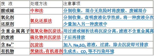 固体残渣往往有一些重金属盐,对水体和土壤会造成污染,要处理(一般变成难溶的氧化物或氢氧化物)后集中掩埋。汞不慎撒落地面时,要先用硫黄覆盖,使其化合为硫化汞后扫除并妥善掩埋。用剩下的钠、钾、白磷等易燃物,氧化剂KMnO4、KClO3、Na2O2等,易挥发的有机物等不可随便丢弃,防止着火事件发生。有毒物质用剩后不可随意乱扔。