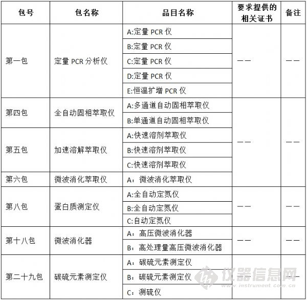 2015年4月22日,中机国际招标公司就“国家质检总局2015年专用仪器设备采购项目”招标公告,此次招标仪器种类涉及气相、液相、气质、离子色谱、凝胶色谱、PCR、全自动生化系统等30大类、113个品目。 质检总局专用仪器设备采购项目始于2006年,每年集中招标采购一次,由此产生当年的协议供货商,即入围产品。在当年有效期内,质检总局所属各单位采购仪器必须在协议供货商范围内选择,而且采购价格不得高于协议中标价格。 2015年招标详情如下所示: 采购人名称:国家质检总局 采购人地址:北京市海淀区马甸东路9号 采购人联系方式:010-82262074 采购代理机构名称:中国通用咨询投资有限公司中机国际招标公司 采购代理机构地址:北京市丰台区西三环中路90号通用技术大厦 采购代理机构联系方式:010-63348490 010-63348489 采购用途:质量监督检验检疫 简要技术要求:符合质量监督检验检疫的业务需求 招标项目的性质:政府采购 0702-1541CITC5M01