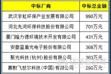 日前,中国环境监测总站国家城市空气质量监测直管站运行管理项目中标结果公布。据悉,该项目主要针对全国161个地级以上城市的201个国家城市空气质量监测直管站在2014年12月1日至2015年11月30日的运行管理服务进行招标。 该项目最终的中标总金额高达3300万元,值得一提的是,不同于以往“清一色”进口品牌包揽政府采购大单,本次中标厂商由国产品牌担当“主角”,包括武汉宇虹、河北先河、安徽蓝盾、聚光科技4家国内知名监测仪器制造商纷纷上榜。