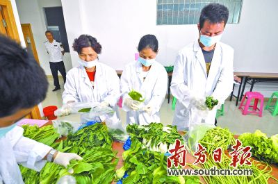 经过摇晃后将溶液滴进农药残毒快速检测仪进行检验。 4月20日下午,石湾农产品检测站实验室里,一场专业精细的高水平较量在身着白大褂的“安全卫士”中间展开,这些“安全卫士”们要在规定时间内,完成蔬菜中有机磷和氨基甲酸酯类农药残留量的快速检测。举行这样的农产品检测技能竞赛,在市民朋友们看来尤为新鲜。事实上,参赛选手们是来自石湾辖区内惠景市场、环湖市场、忠信市场、沃尔玛、新一佳超市等50间农贸市场、超市的检测员。石湾方面表示,希望通过举办检测劳动技能竞赛,努力打造一支业务素质过硬的检测人才队伍,让石湾的市民能吃上放心安全的蔬菜水果等农产品,为市民的菜篮子筑起一道坚固的防线。 假野山猪一露面即现形 已建立三级农产品质量安全监测网络 在日益严峻的食品安全形势下,究竟何以能食,谁来为我们把关舌尖上的安全?这场由石湾镇街道总工会、禅城区食品药品监督管理石湾分局共同举办,禅城区农产品质量安全监督检测中心指导的检测技能竞赛,吸引了各界的关注,加之佛山率先在全省内启动创建食品安全示范市和农产品质量安全市,食品安全成为全社会空前关注的话题。 4月13日,深村仁和市场外围,一位售卖野山猪的流动摊贩吸引了市民的注意,声称是“真正野山猪”的摊主不断向市民群众推介,石湾农产品质量安全监督检测中心检疫员阿颜在市场巡查检疫时发现,这合计45公斤的野山猪肉根本就是假的,中心工作人员立刻对这批假野山猪肉进行了没收,并做了无害化消毒处理。 事实上,这样的假野山猪案例近期在石湾辖区发现了共5起,分别在城南市场、环湖市场、仁和市场、惠雅市场出现。“这是不法分子以淘汰的种用公母猪当作野山猪,进行非法屠宰后在石湾辖区各市场出售,用以欺骗市民。”石湾农产品质量安全监督检测中心负责人告诉记者,工作人员在检疫时发现后均当即做出了处理。 “就是他们这么一群人,为了市民群众每天从市场和超市购买到放心的蔬菜水果等农产品,他们每天奋战在食品安全检测的第一线。在黎明时分,他们就要对进入市场的各类蔬菜水果等农产品进行抽样检测,发现有超标问题的蔬果即及时销毁处理,将检测结果上报、并在市场的明显位置进行公示,他们就是农贸市场(超市)的农产品检测员—舌尖上的安全卫士。”20日的技能竞赛上,主持人对参赛选手们进行介绍时说。 事实上,佛山实施农产品质量安全监督检测体系建设三年提升计划(2014—2016年)中,石湾农产品检测和动物防疫检疫站在石湾镇街道高度重视和大力支持下,增加检测仪器设备,推进检验资源的整合共享,提升了检测水平和快速检测能力,到目前为止,在全市32个镇级综合检测站中,石湾已经率先完成建设。 据介绍,石湾镇街道目前已经完成石湾中小学校和幼儿园的“阳光厨房”建设,并已基本完成对石湾农贸市场的升级改造任务,石湾的各农贸市场(超市)也全部建立了农产品安全检测室,构建起了区、街道和市场三级农产品质量安全监测网络,为创建食品安全示范市和农产品质量安全市打下坚实基础。 干货、水产品、生鲜面均纳入检测 平均一年抽检样品25万多份 据石湾农产品检测和动物防疫检疫站负责人透露,佛山市民群众对食品安全越来越重视,仅2014年,通过12315热线反馈到石湾检测站的农产品质量投诉就达80多宗,其中涉及多种农产品疑似农药残留等问题。 石湾镇街道加大了对食品安全的投入和监管力度,完善了先进的检测设备,检测队伍不断发展壮大,农产品的检测项目不断拓展。现在,一走进检测站实验室,NC-900农残速测仪、酶标仪、肉类水分测定仪等仪器一应俱全,两位身着白大褂的工作人员正在对当天从市场上抽取的鱼类样品进行检测。事实上,水产品中是否添加了孔雀石绿等高危有机物,成为目前食品安全检测必须把关的一道闸口。“类似这样的农副产品检测项目范围不断拓展,已经从原来的20项增加到42项。”据上述负责人介绍,该检测站目前覆盖的项目范围包括冰鲜、水发产品的甲醛、干货的二氧化硫、豆面制品的吊白块、畜、水产品的瘦肉精、水产品的孔雀石绿、生鲜面、肉制品的硼砂和亚硝酸盐,以及氯霉素、呋喃唑酮类、黄曲霉素M1、磺胺、双氧水、喹诺酮等。 “经过不懈努力,现在,我们平均每年对农产品的抽检样品总量达到25万多份,果蔬等农产品的抽检合格率由原来的94%到提升到现在99.7%以上。”检测站负责人表示:“石湾除了有全市硬件条件最好的农产品检测实验室,还通过举办石湾农产品检测技能竞赛,努力建立一支业务素质过硬的检测人才队伍。” “石湾的居民可以在农贸市场(超市)购买放心的农产品,食品安全有保障,生活在石湾真好,希望石湾继续以国家农产品质量安全示范市的标准严格监管,进一步完善农产品质量安全监管体系,争创国家农产品质量安全示范区。”3月18日,由第三方机构组成的省级考核专家组对佛山市创建农产品质量安全市进行考核,考核组分别到了惠景市场和石湾检测站进行实地考察,翻阅了相关抽检台账和制度建设等材料。通过听取汇报、查阅资料、现场实地考察、群众问卷调查四个方面,对石湾在农产品质量安全体系建设、质量监管、农产品检测等方面进行综合考评,在考核结束后,专家组这样点评石湾街道的食品安全形势。