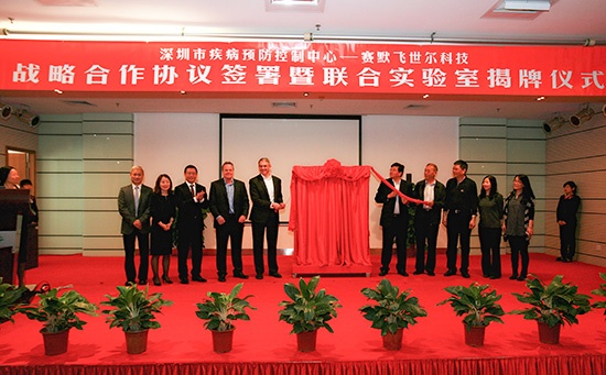 出席揭牌仪式的还有深圳市疾病预防控制中心主任程锦泉先生、深圳市疾病预防控制中心分子生物医学检验科主任联合实验室的首席科学家邓平建先生、赛默飞中国创新中心副总裁乐杰明(James LaDine)、赛默飞分化学分析分子光谱产品线全球市场总监马丁朗(Martin J. Long)、化学分析分子光谱产品线中国市场和开拓总监吴秋波等来自全国各地和深圳本地的100多位嘉宾。